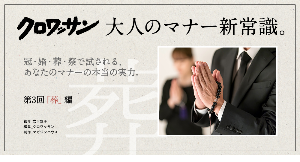 マナーを知っていようといまいと、人生の儀式はおかまいなしにやってくる。そんな「いざ」に備える、大人の心得。マガジンハウス発行の『クロワッサン』が監修する「大人のマナー新常識。」の特別配信3回目。