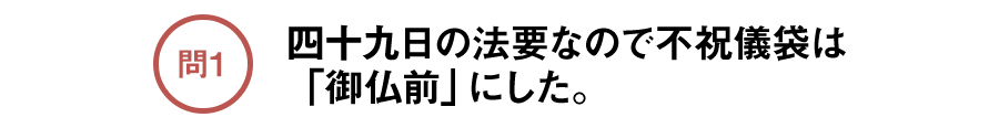 仏式の場合、四十九日を忌明けとする。「亡くなった方も、初七日、二七日……と7回の法要を経て、この日に初めて仏となります」。つまり、四十九日の法要での表書きは「御仏前」でよく、それ以前の葬儀、初七日では「御霊前」「御香料」などを用いる。ただし浄土真宗はすぐに成仏する考えで、葬式から御仏前の表書きになる。