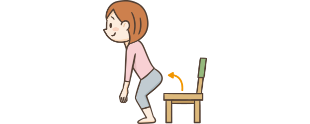 普段の立ち座りでこの動作を意識しましょう。時間があるときは10回程度行ない、慣れてきたら回数を増やしていきましょう。
