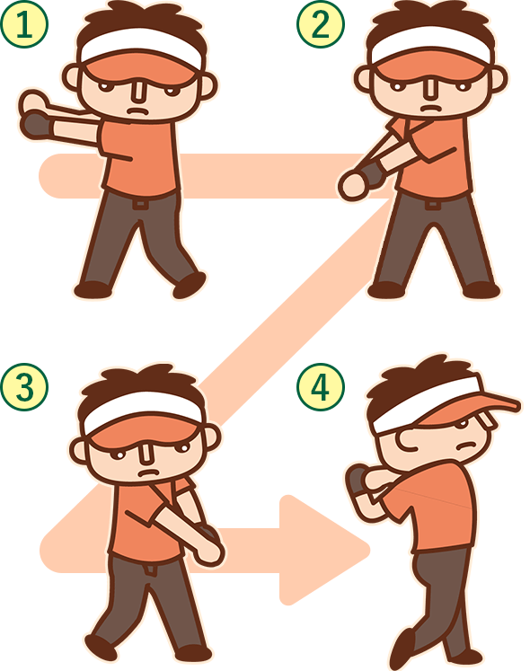 ゴルフと言えばスイング。基本的な体の使い方を覚えるために、まずはクラブを持たずにスイング動作を練習してみましょう。クラブを持つと、どうしても腕を振ることに意識が向いてしまうので、体全体を使って力を伝えることを覚えるのには「クラブなしの素振り」が効果的。ケガのリスクも少なく、変なクセが付きづらいため、結果的に上達も早くなります。