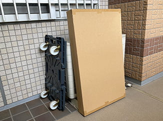 障害物あり室外機の通気を遮るように台車、