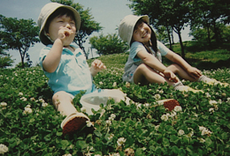 本作品は、桜の木や、たんぽぽ、青々とした緑の中で、子どもたちのかわいらしい表情をとらえた写真で構成されています。いきいきとした子どもたちの姿を見ていると、自然と笑みがこぼれてきます。